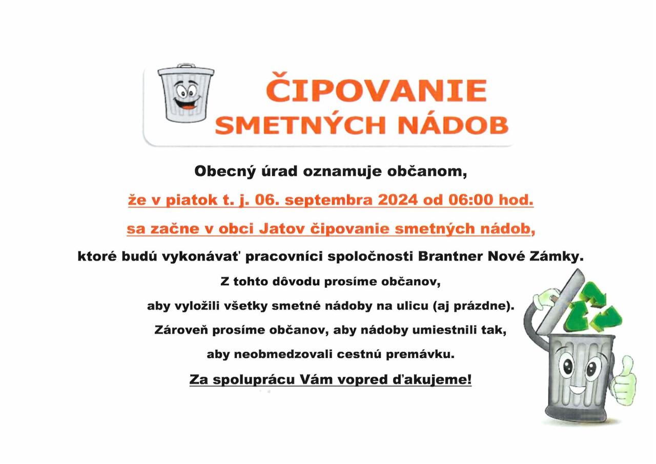 OZNAM - Čipovanie smetných nádob v obci Jatov