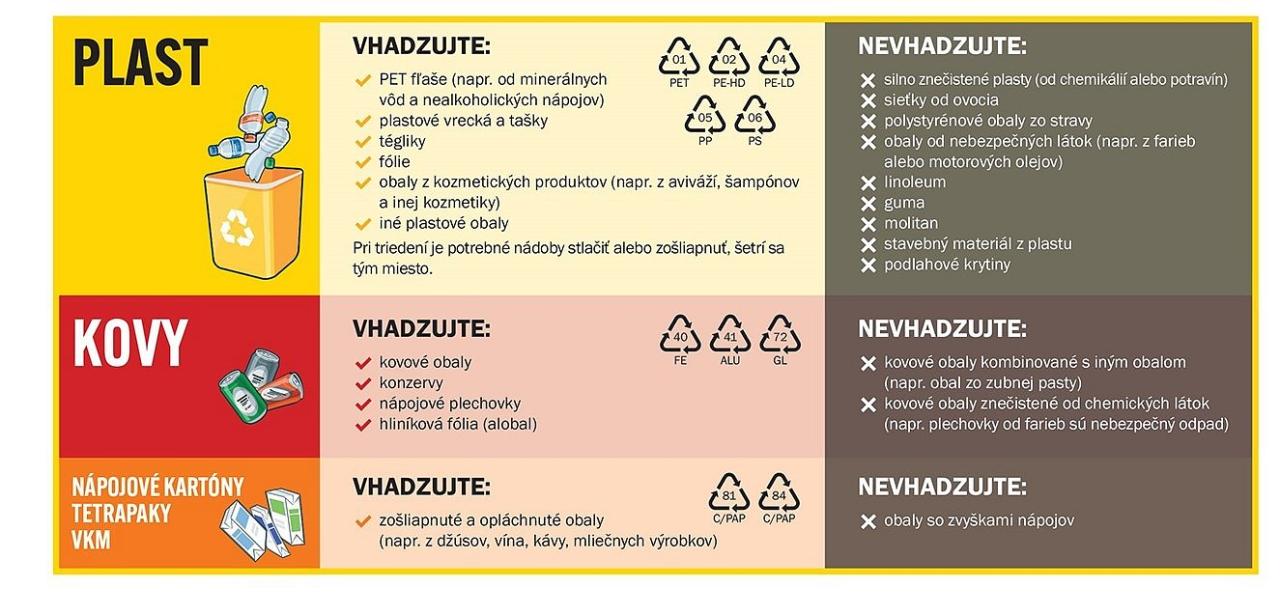 NESMIE SA VHADZOVAŤ !!! - stavebný materiál z plastu, ani stavebný polystyrén. Pri triedení je potrebné nádoby stlačiť alebo zošliapnuť, čím sa šetrí miesto.