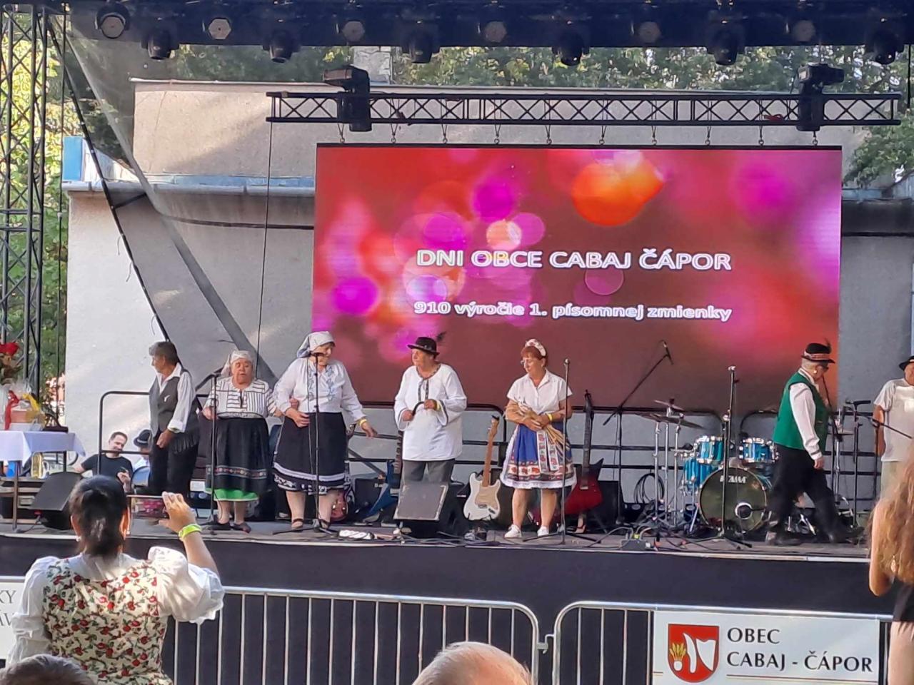 Vystúpenie speváckeho súboru Jatovčanka na prehliadke spevokolov "Spievaj, že si spievaj", ktorá bola súčasťou kultúrneho programu podujatia "Dni obce" pri príležitosti 910. výročia písomnej zmienky obce Cabaj-Čápor.