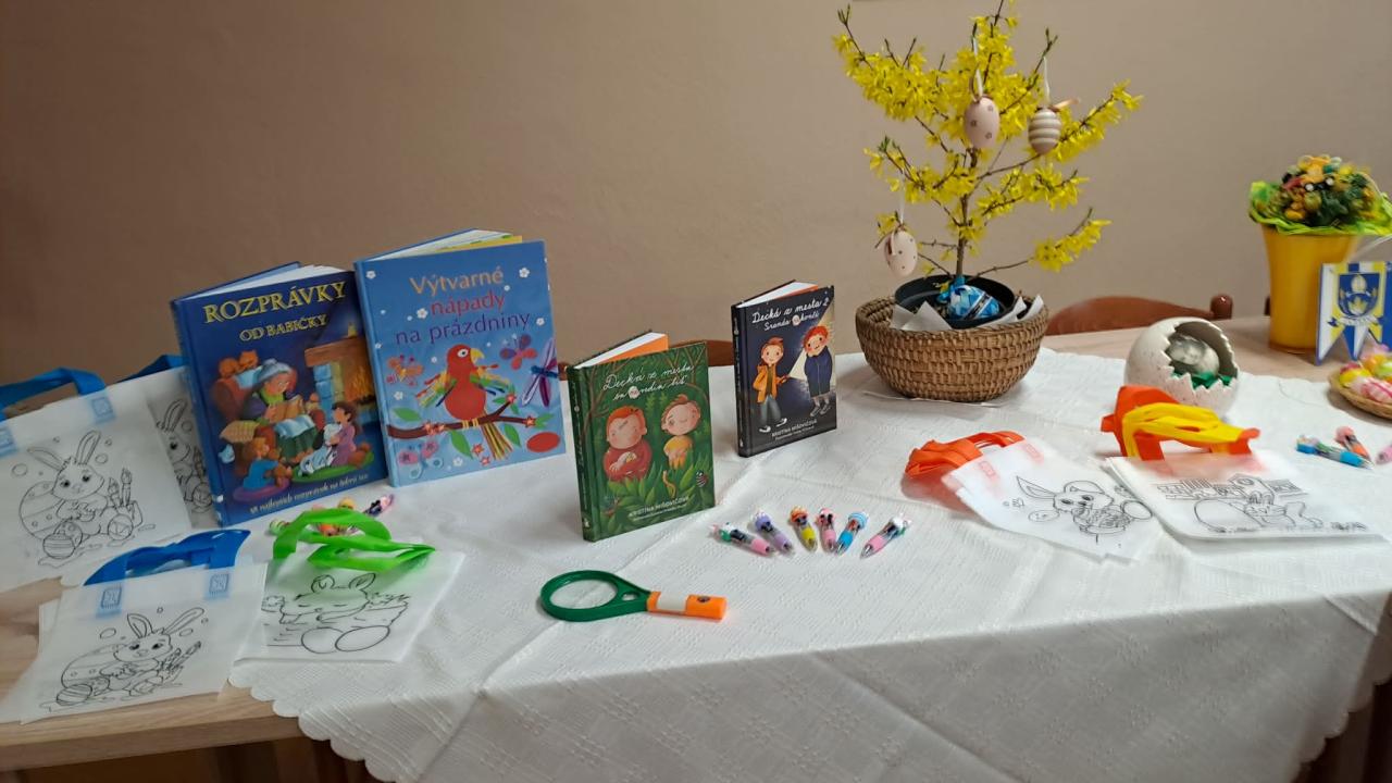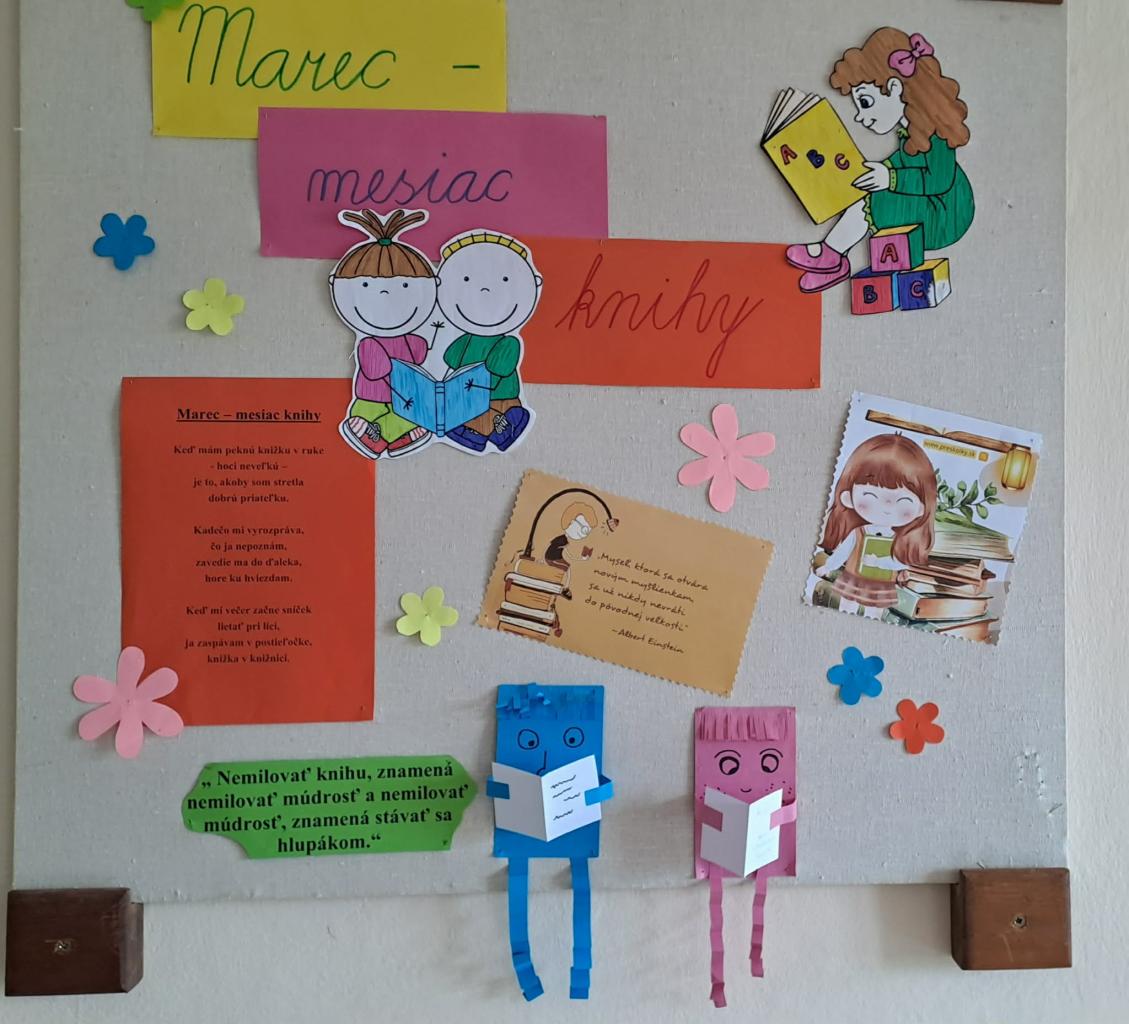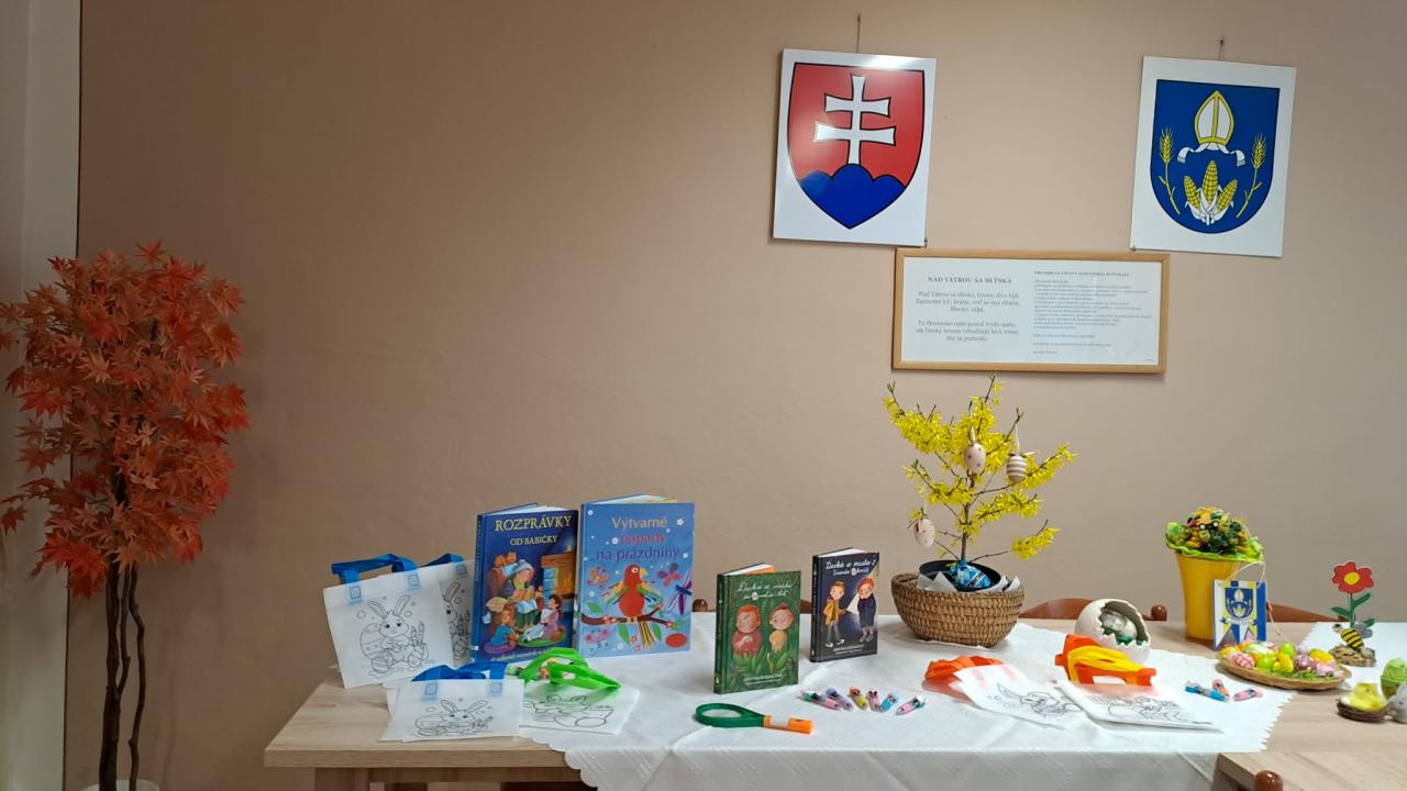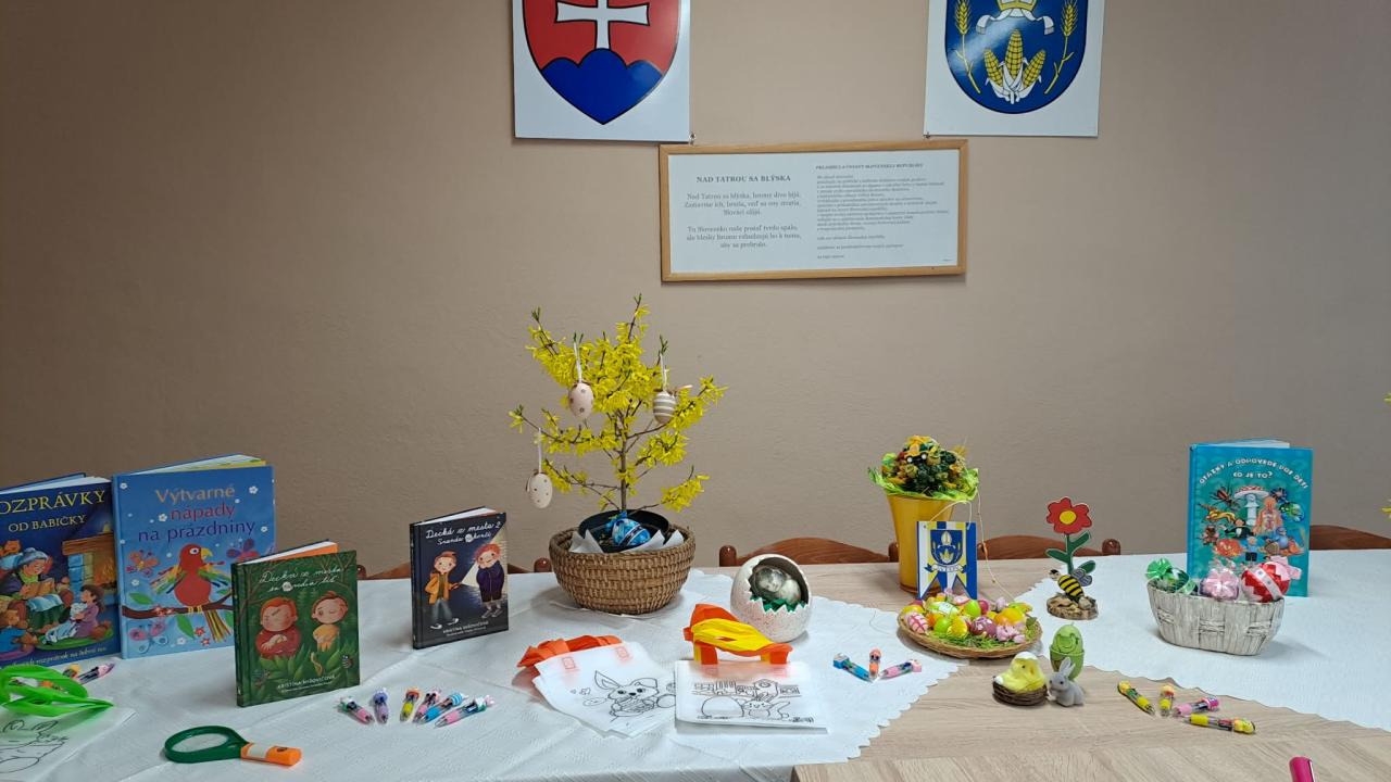 Dnes si detičky zopakovali pravidlá ako sa správať v knižnici a spôsoby manipulácie s knihami. Pani knihovníčka si pripravila milý rozprávkový príbeh o medvedíkovi Miškovi, vyzdobili si veľkonočné pozdravy a farebnou odtlačkovou metódou "vymaľovali" púpavy.